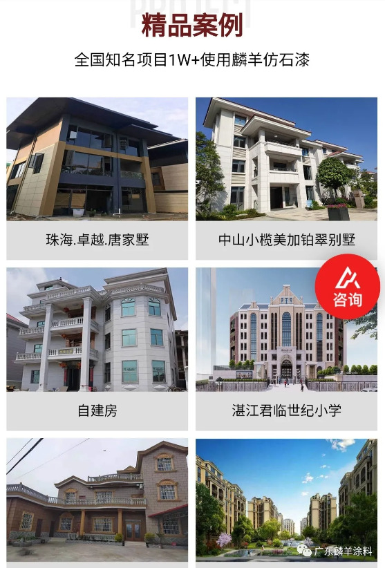 我國(guó)各地農(nóng)村自建房/別墅/學(xué)校/等建筑使用麟羊仿石漆