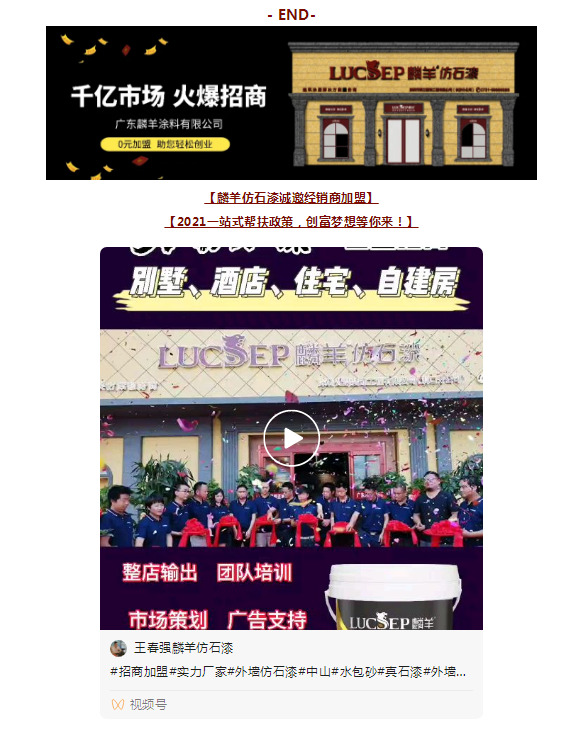 在現(xiàn)今的涂裝裝飾市場(chǎng),外墻的需求很大,傳統(tǒng)的瓷磚、石材等裝飾,已無(wú)法滿(mǎn)足消費(fèi)者的高性?xún)r(jià)比和個(gè)性化裝飾需求,麟羊仿石漆作為一種新型的外墻裝飾材料,呈現(xiàn)花崗巖石材一般的質(zhì)感及裝飾效果,越來(lái)越受到消費(fèi)者的追捧。加之國(guó)家對(duì)新農(nóng)村建設(shè)和建材下鄉(xiāng)政策的支持,更為外墻仿石漆涂裝帶來(lái)新機(jī)遇。